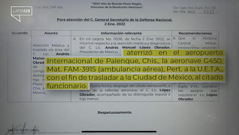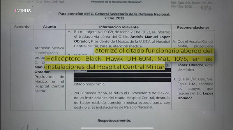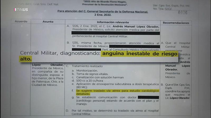 Entre los documentos de la Sedena, obtenidos por un grupo denominado “Guacamayas”, difundidos por Carlos Loret, se dice que el presidente mexicano tiene gota, hipotiroidismo y angina inestable de riesgo grave. Se dice que el 2 de enero de este año una ambulancia aérea del Ejército trasladó a López Obrador al Hospital Central Militar de la Ciudad de México, con diagnóstico grave.