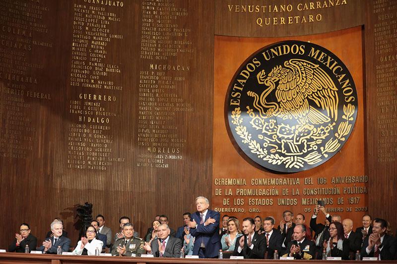 Recordó que aquellos constituyentes de 1917 superaron sus intereses de facción. Tuvieron la inteligencia y el carácter para pasar de los adjetivos hirientes a los sustantivos catalizadores de acuerdos. Transitaron de la diatriba al argumento y de las armas a la constitución. El diálogo triunfó sobre la división y eso es precisamente lo que hoy celebramos.