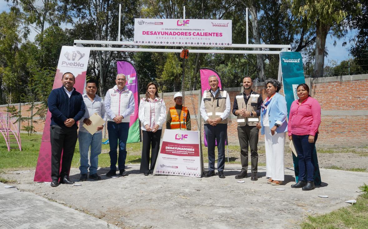 En cumplimiento a la estrategia nacional y estatal del programa de alimentación “Desayunos Escolares Calientes”, el presidente municipal, Pepe Chedraui y la presidenta del Patronato del DIF Puebla Capital, MariElise Budib, encabezaron la colocación de la primera piedra para la construcción de un desayunador escolar en su modalidad caliente en el Jardín de Niños Teotihuacan de la Junta Auxiliar de San Francisco Totimehuacan.