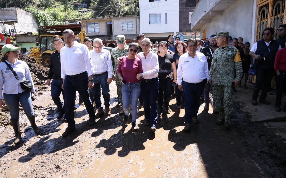 En el recuento de atención por parte de fracción y estado, del 10 al 25 de octubre, las autoridades realizaron recorridos en Huauchinango, Xicotepec, Pahuatlán, Tlacuilotepec, Pantepec, Jopala, Tenampulco, Francisco Z. Mena y Eloxochitlán. La presidenta Claudia Sheinbaum visitó las zonas afectadas el 12, 19 y 23 de octubre, mientras que el gobernador Alejandro Armenta mantuvo presencia continua desde el primer día, encabezando acciones de rescate, entrega de apoyos y supervisión de obras en las 23 demarcaciones más impactadas por las lluvias.