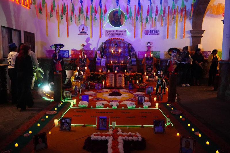 - Sindicato Estatal de Trabajadores de la Educación de Puebla, con la ofrenda titulada “Ayer lloraba por verte, hoy lloro porque te vi”, inspirada en la obra del maestro Ignacio Manuel Altamirano.