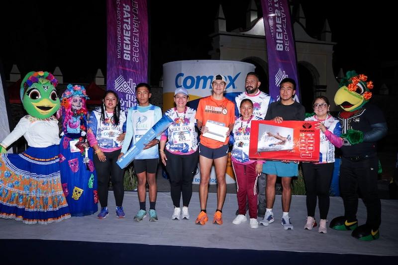Al finalizar el recorrido, se llevó a cabo la ceremonia de premiación para las y los ganadores de la categoría libre 8K en ramas femenil y varonil, reconociendo su esfuerzo y desempeño. Todos los participantes recibieron medalla conmemorativa.