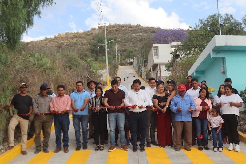 El presidente municipal Mateo Hernández López encabezó el inicio de la obra de adoquinamiento en la calle 25 Oriente, entre avenida Miguel Hidalgo, 4 Sur y privada de la 25 Oriente, con una intervención de 172 metros lineales, así como la entrega de pavimento hidráulico en la calle 19 Oriente, entre 4 y 6 Sur, con 118 metros lineales, ambas en la comunidad de San Mateo Tlaixpan.