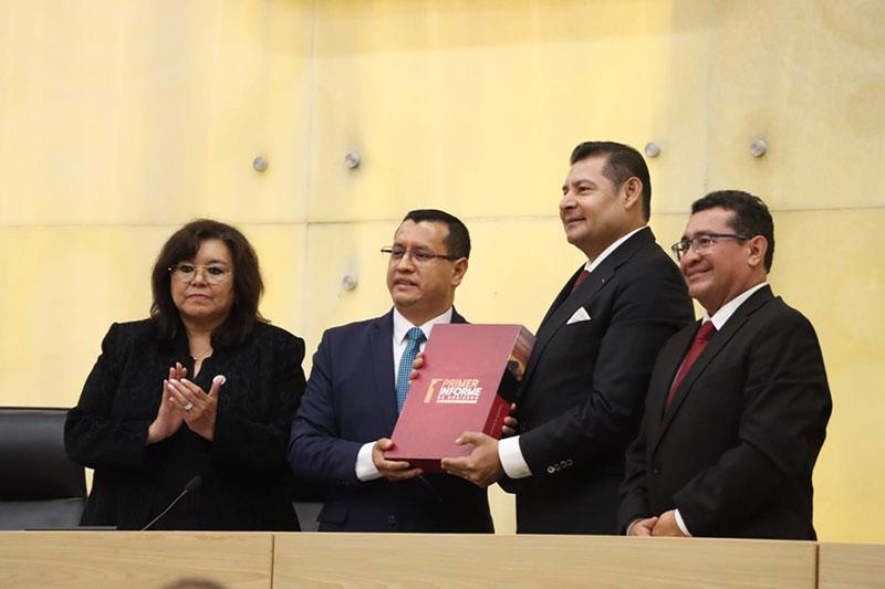 Seguridad, justicia y riqueza comunitaria son los tres pilares que guían mi administración, bajo los principios de bioética social, visión de Estado y de futuro para las próximas generaciones, destacó Alejandro Armenta Mier al rendir su Primer Informe de Gobierno.