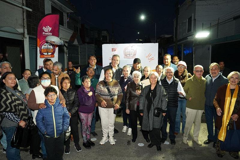 Enciende Pepe Chedraui luminarias modernizadas con LED en Villa Encantada con Puebla Brilla