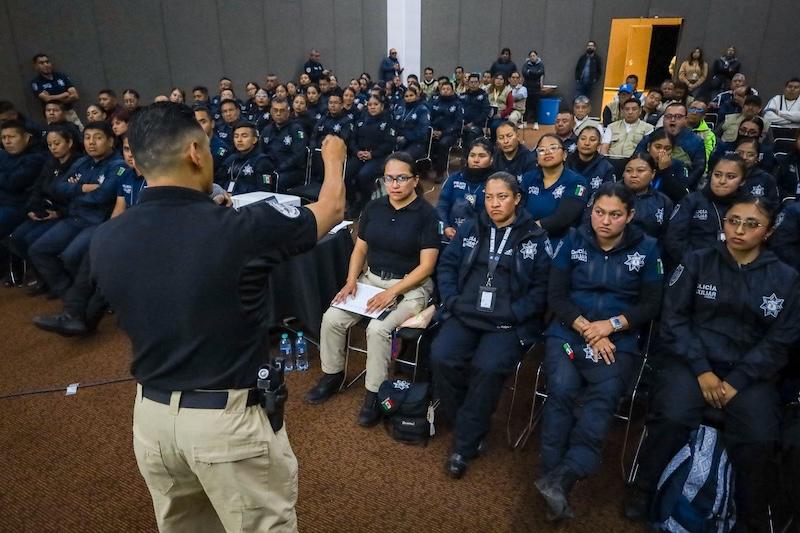 En cumplimiento al compromiso del gobernador Alejandro Armenta Mier de fortalecer las capacidades operativas de los cuerpos policiales, 140 elementos de la Policía Auxiliar y 41 de seguridad interna de Convenciones y Parques participaron en la capacitación “Protocolo de Actuación”.